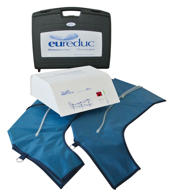 Il est également possible d’utiliser un appareil de pressothérapie individuel en complément du kinésithérapeute qui contribuera au drainage du lymphoedème.
