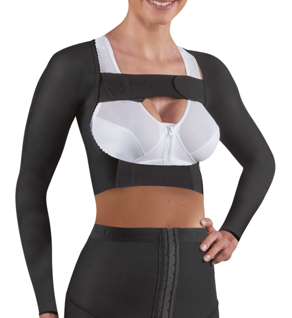 Lipobras : Comme le panty, le port d’un boléro de compression est dans le cas spécifique d’une liposuccion des bras ou du haut du dos.