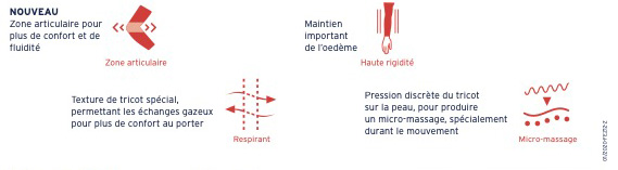 √ Tricot interne et externe conçu pour faciliter la fonction articulaire √ Maintien de la compression sans interruption de la dégressivité