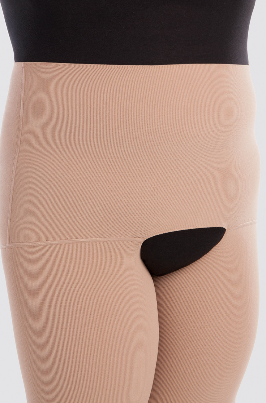 Dans le cadre du lipoedème, on privilégiera le modèle collant afin de bien drainer tout le bas du corps jusqu'aux hanches.