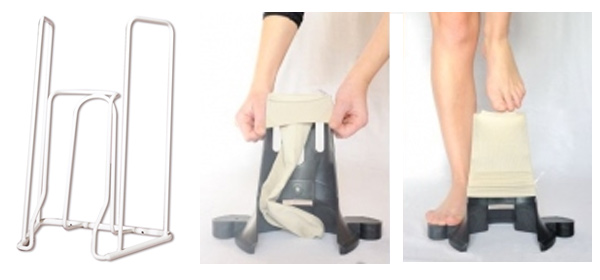 Rolly de Sigvaris : appareil permettant de mettre ou d'enlever ses bas. Nous le préférons pour la 2ème solution.