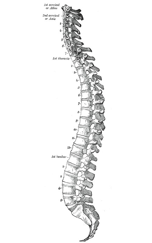 Le rachis repose sur le bassin et supporte la boite crânienne.