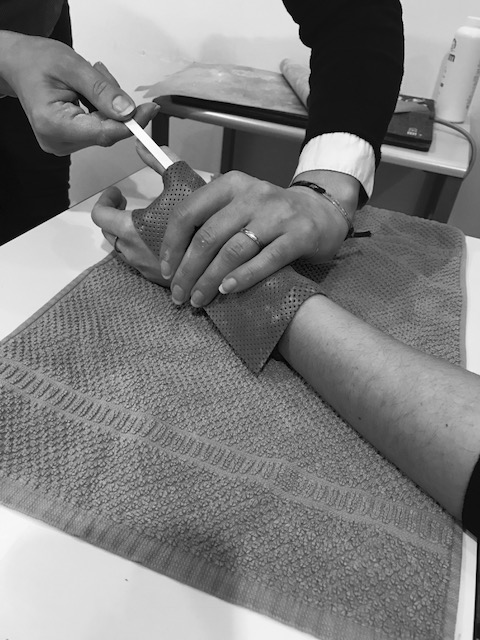 Les attelles sont réalisées en matière thermo-plastique basse température moulée sur le membre du patient. Elles s'adaptent donc parfaitement et offrent au patient efficacité, confort et légèreté.